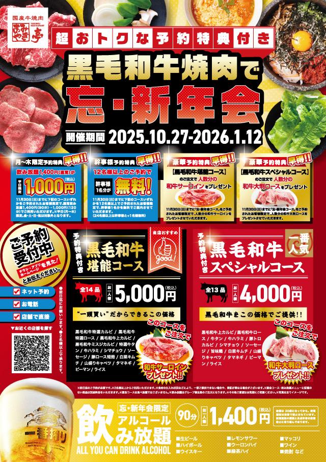 2025年10月27日(月)から2026年1月12日(月)までの期間限定で、忘・新年会の特別コースを実施いたします。