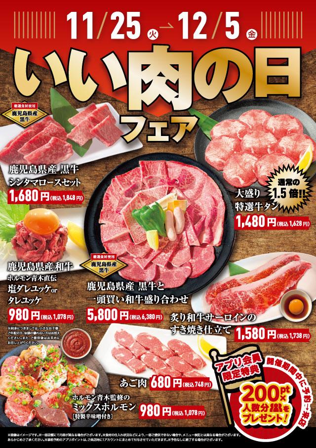 2025年11月25日(火)から12月5日(金)の期間限定で、いい肉の日フェアを開催いたします。